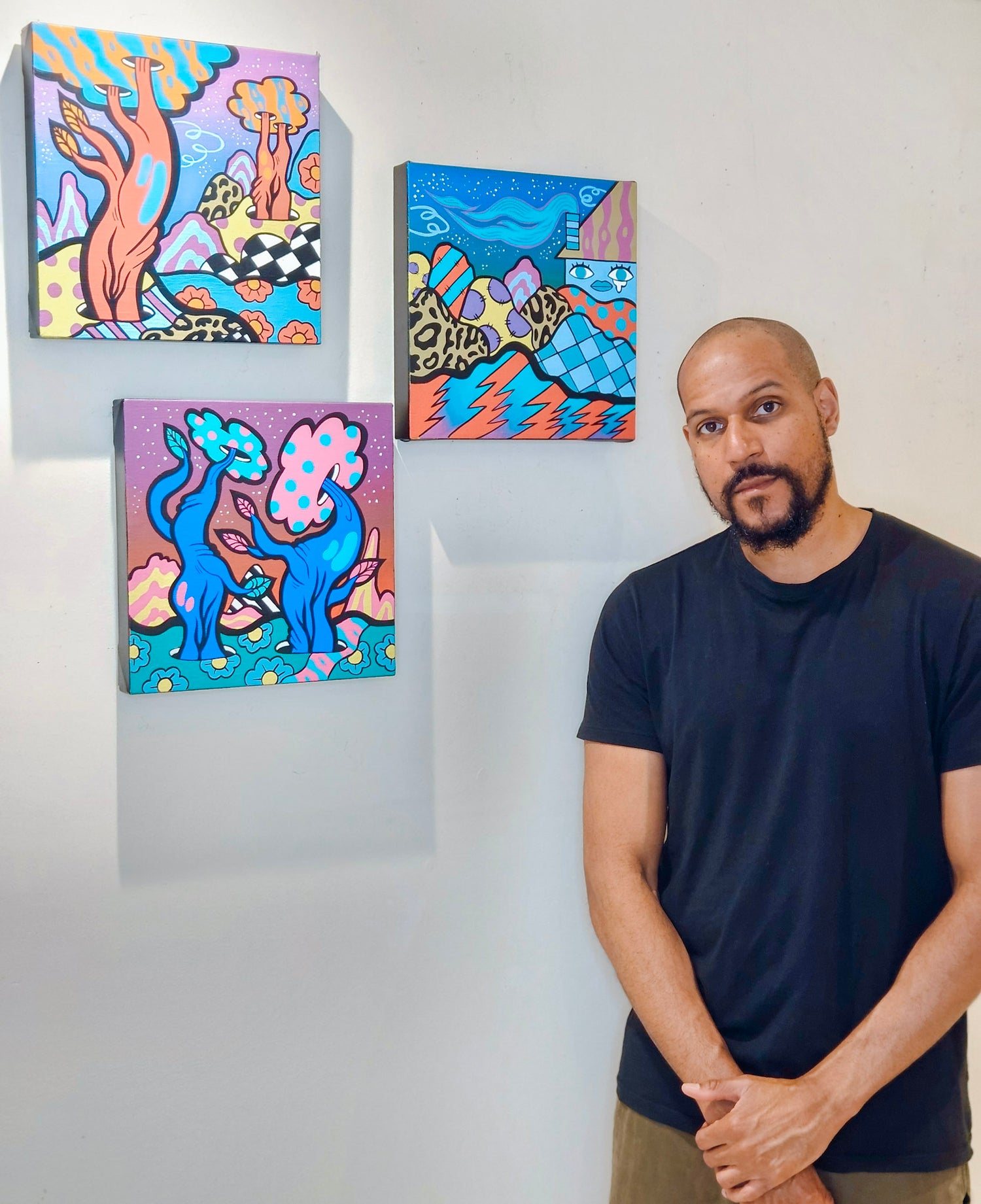 "My name is Andy Dass and I am a contemporary artist from Montreal, Quebec. My passion lies in creating vibrant paintings, and illustrations that evoke feelings of nostalgia. I love to paint worlds and characters that transport the viewer to my own personal universe. Worlds full of whimsy and abstraction. My aim is to capture the imaginative wonder of my childhood, while exploring the satirical, humorous, and thought provoking aspects of everyday life. Over the years I have been grateful enough to cut my chops doing collaborative mural painting, exhibiting works in various galleries, and art fairs, live paintings, fashion design, and collaborating with non profit organization Fashion Fights Cancer."