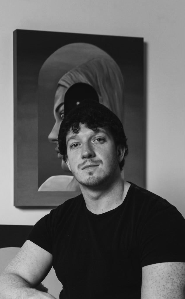 The portraits created by Nick pay tribute to the human gaze, offering a glimpse of the beauty and strength within. He finds a strong look or a piercing gaze captivating to observe and to paint. There is a unique power in the exchange that occurs when locking eyes with another human being – a moment of connection, confrontation, or desire. Through the eyes, there is an unexplainable exchange of information and energy. While it may be impossible to fully capture the soul, Nick strives to infuse as much emotion and life into his work as possible.