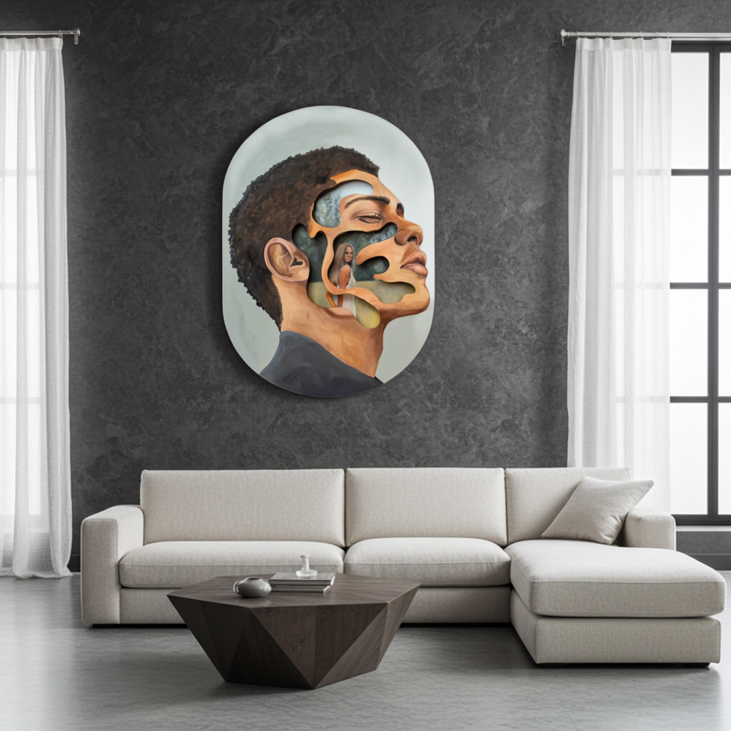 How July Used to Feel is a layered exploration of memory and perspective. Through sculptural cut-outs and soft textures, Nick Bodoin blends portraiture with landscape, creating space for reflection and connection.